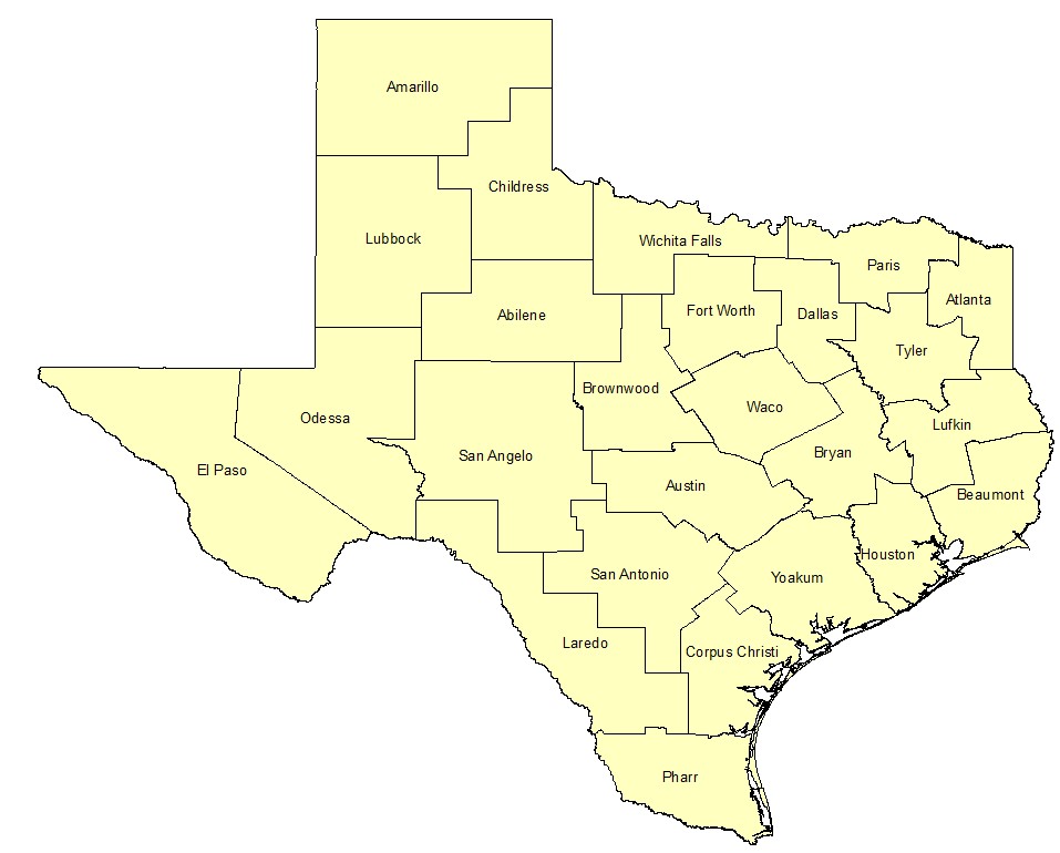 Description: <DIV STYLE="text-align:Left;"><DIV><DIV><P><SPAN><SPAN>TxDOT's 25 Districts are geographic subdivisions of the state, each responsible for planning, contruction, and maintenance of on-system roadways within its administrative boundary. Each district is a conglomeration of several Texas counties. Area Engineer and Maintenance Section Offices are subdivisions of a district. </SPAN></SPAN></P><P><SPAN><SPAN>This version utilizes a generalized boundary along the coast, which is sometimes necessary for analysis in which it is important to encompass segments of roadways that travel over water. Roadways on bridges or causeways that span intracoastal waterways are not covered by detailed polygons that precisely follow the coastline, therefore a generalized boundary is needed for some types of analysis where it is important to preserve such relationships.</SPAN></SPAN></P><P><SPAN><SPAN>Date valid as of: February 2015</SPAN></SPAN></P><P><SPAN><SPAN>Publish Date: February 2015</SPAN></SPAN></P><P><SPAN><SPAN>Update Frequency: Static.</SPAN></SPAN></P><P><SPAN /></P></DIV></DIV></DIV>